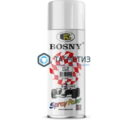 Краска аэроз. BOSNY 520 мл. №040  БЕЛАЯ глянцевая